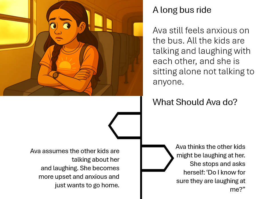 Step into an interactive, choose-your-own-adventure experience designed to help teens understand and manage anxiety. Follow Ava, a 13-year-old navigating anxiety in her every day and help her explore different choices and the impact on her outcomes. Using Cognitive Behavioral Therapy concepts, this engaging presentation blends storytelling with practical coping strategies like self-talk, thought checking, and journaling. Perfect for classrooms, workshops, or mental health programs, it empowers young people to build resilience and take control of anxious thoughts in a fun, relatable way.