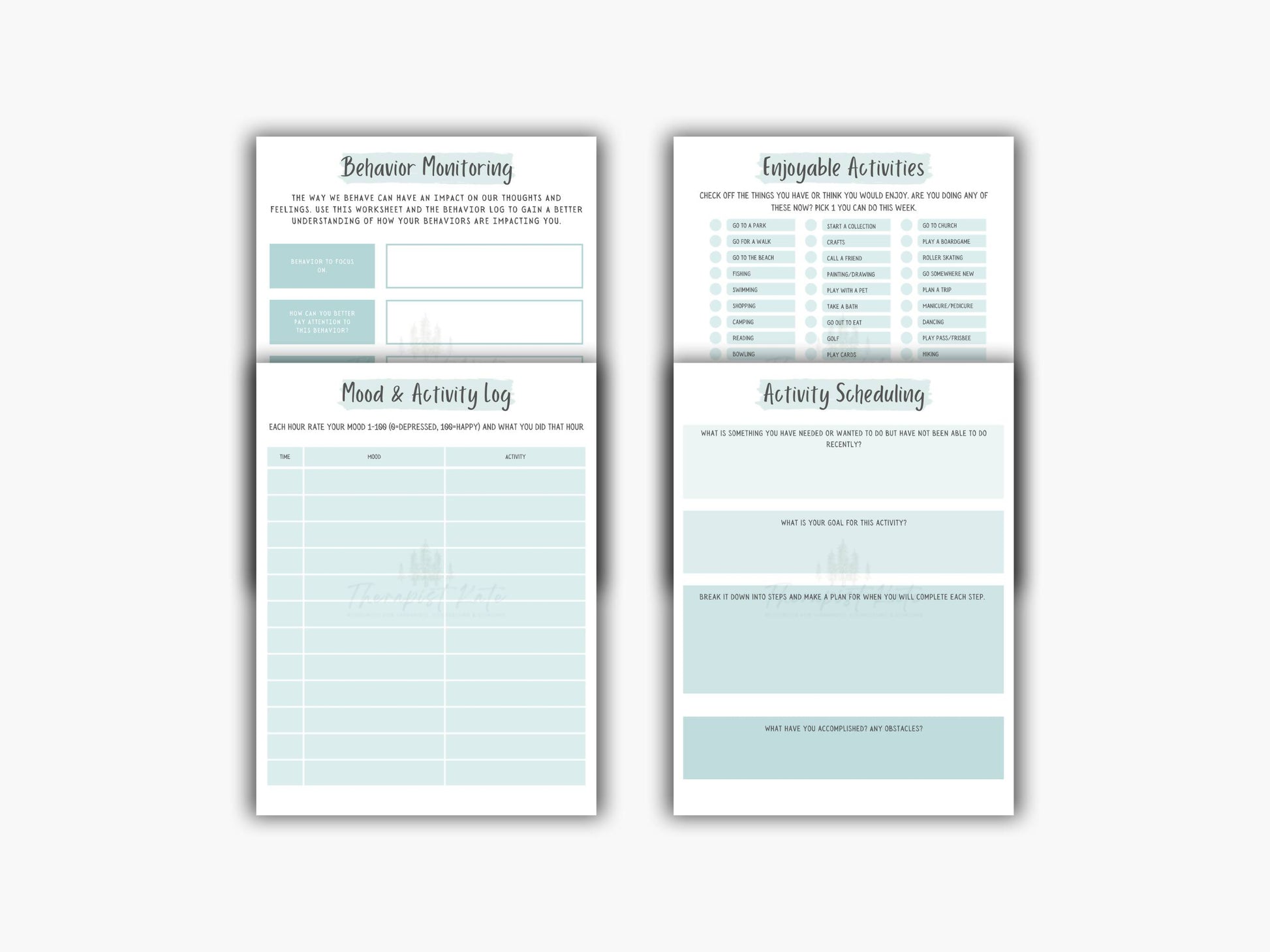 CBT Behavioral Activation Worksheets Bundle
