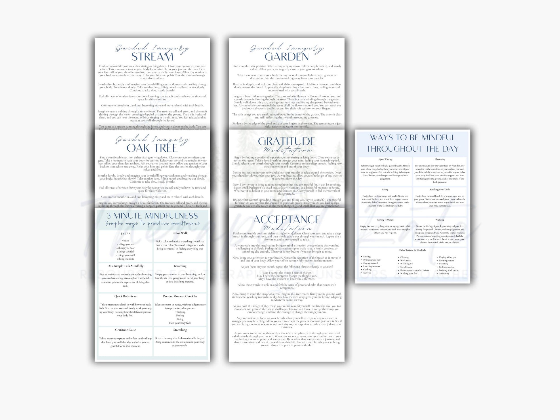 This bundle of Mindfulness and Meditation resources is designed for personal use or for therapists, counselors, psychologists, or coaches to use with clients. This bundle includes: